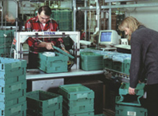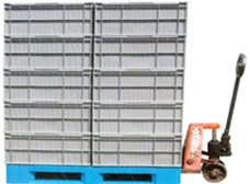 公司生產(chǎn)的叉車、托盤、以及塑料周轉(zhuǎn)箱之間的配合使用場景